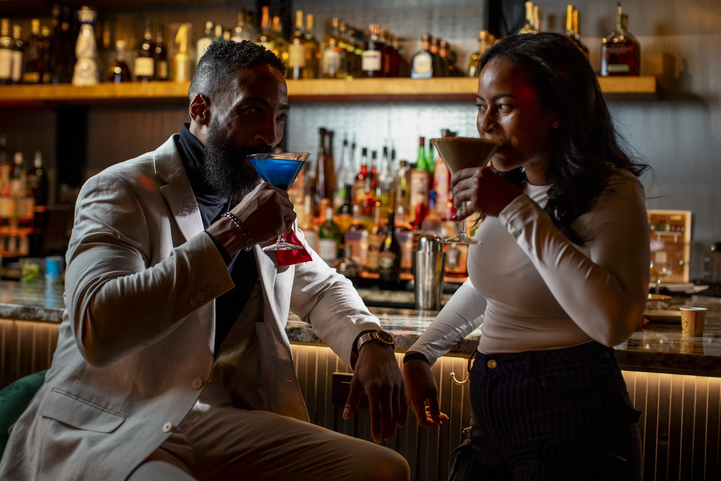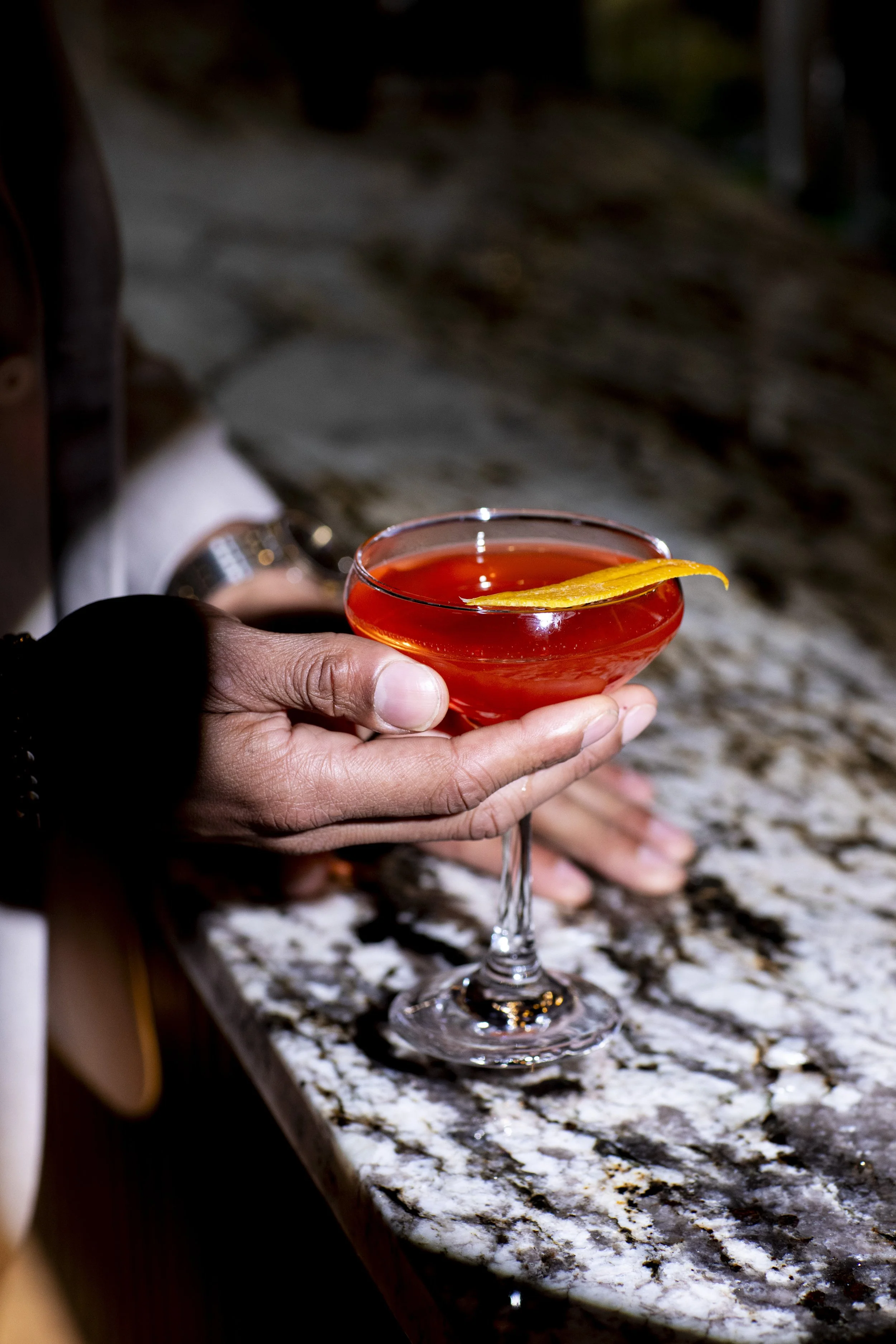Pineapple, orange, and lemon juices, balanced with simple syrup and a splash of grenadine for a rosy glow. Topped with bubbly club soda