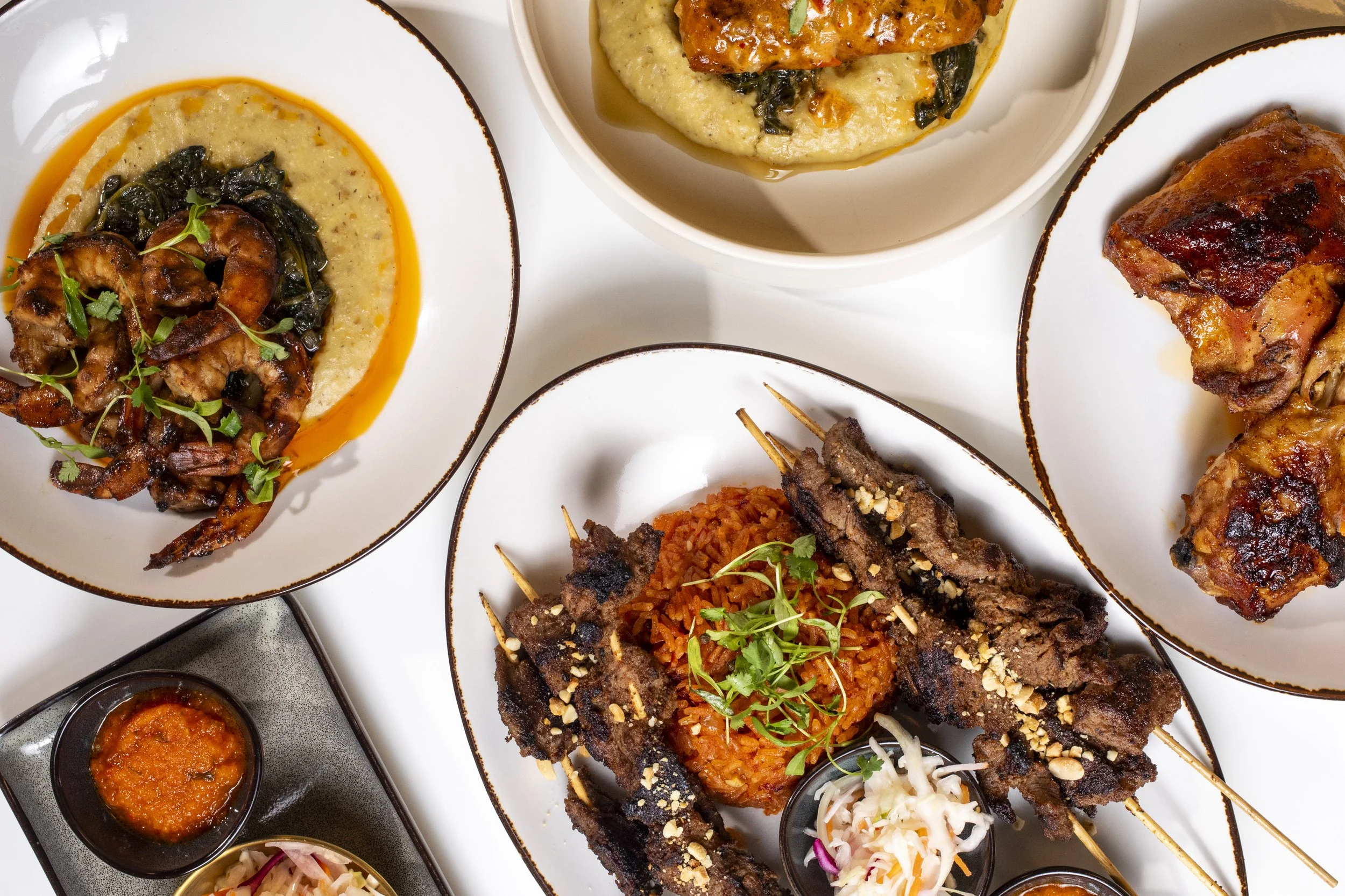 ——— DINE-IN ——— Cafe Lunch Happy Hour Dinner Brunch Cocktails & Spirits Wine List Bottle Service Late Night Make a Reservation DINNER 5PM - 10PM APPETIZERS SAMBUSA (VG) - 8 Spiced lentils, caramelized onions, Ethiopian herbs add beef suya + 8 | add chicken + 8 | add salmon +9 | add shrimp +10 HOUSE SALAD - 8 Mixed greens, red peppers, onions, feta cheese add beef suya + 8 | add chicken + 8 | add salmon +9 | add shrimp +10 SOST WINGS - 16 Choose from Lemon Pepper, Old Bay, Mambo, BBQ, Harissa or Buffalo BLACK-EYED PEA SALAD (VG) - 14 Black-eyed peas, cucumber, red pepper, cherry tomatoes, habanero, parsley, cilantro, lime vinaigrette GRANDMA'S SUYA - 18 West African beef skewers served with mild and spicy pepper sauces. *contains peanuts MAINS SHIRO FRIED CHICKEN - half 23/full 45 Ethiopian/Eritrean spices. Served with Black-eyed pea salad SOST CHEESEBURGER - 19 Mambo sauce, onion jam, Muenster cheese, fried onions, seeded mustard, spicy aioli. Vegan patty substitute available. Served with fries SUYA BURGER - 19 Beef patty stewed in peanut sauce, avocado crema, suya patty, lettuce, red onion. Served with fries *contains peanuts GRANDMA'S SUYA PLATTER - 26 West African beef skewers, mild and spicy pepper sauces. Served with jollof rice and pikliz Contains peanuts* HARISSA CREAMY SALMON - 28 Salmon fillet with Tunisian harissa pepper cream sauce. Served with mashed potatoes and spinach (shrimp substitute available) BERBERE SHRIMP - 28 Head-on prawns stewed in Ethiopian and Eritrean spices SIDES FRIES - 8 Old Bay seasoning JOLLOF RICE - 10 GARLICKY SPINACH 8 DESSERT CHEESECAKE - 10 Served with fruit compote. Served with cherry coulis and vanilla ice cream SWEET POTATOE CROQUETTE - 12 Milk fall spices, sugar, vanilla Served with cherry coulis and vanilla ice cream TIRAMISU - 10 A 20% service charge will be automatically added to all bills. We appreciate your support and thank you for dining with us!